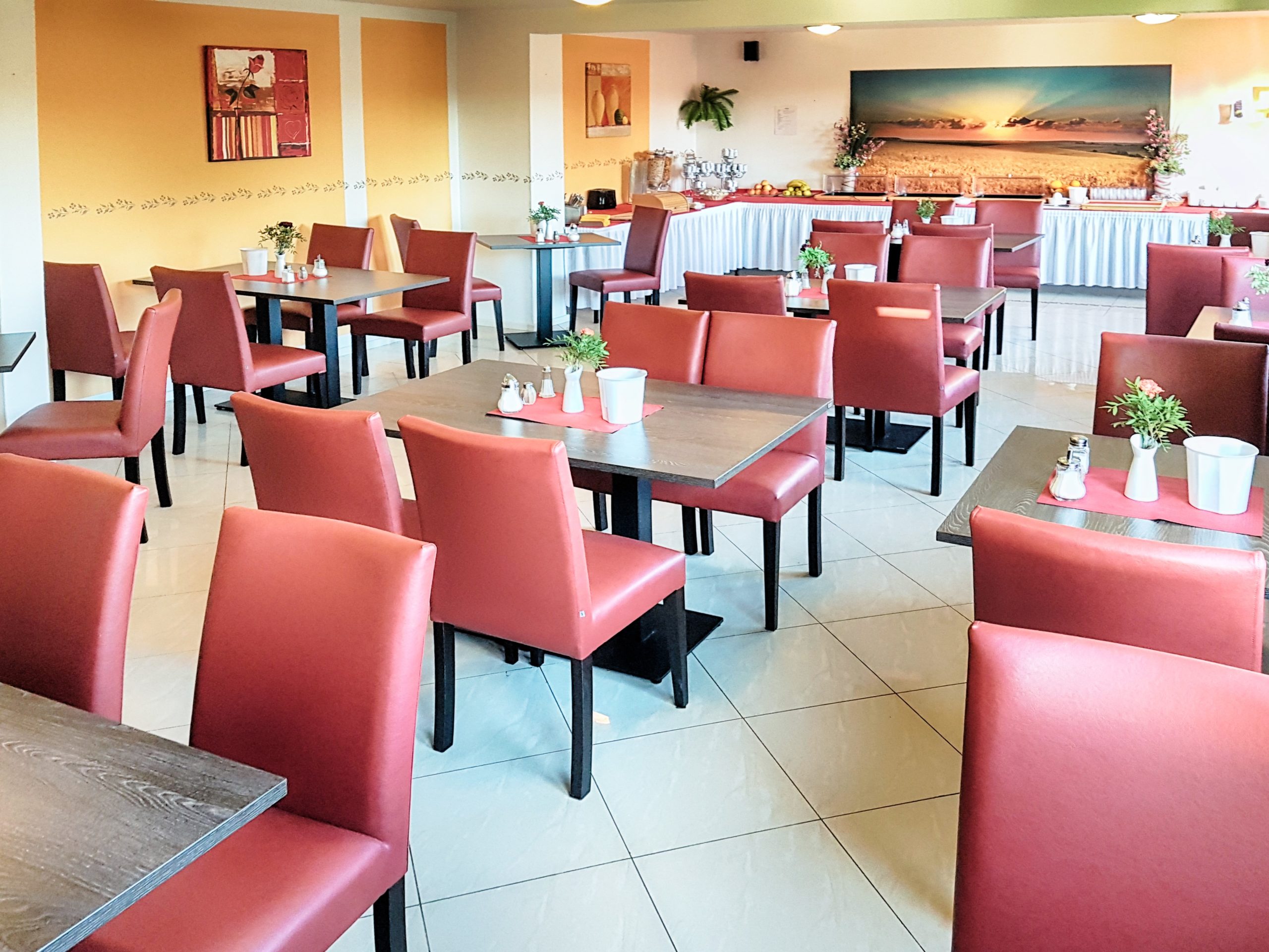 Our rich breakfast buffet offers fresh rolls, bread, toast, various jams, a selection of sausage and cheese, breakfast egg, muesli and cornflakes, as well as freshly brewed coffee, tee and fruit juices - after request also freshly squeezed - awaits you from Monday to Friday from 6.00am to 10am and on Saturday, Sunday and holidays form 7.30am to 10.00am - for 10,00 EUR per person!